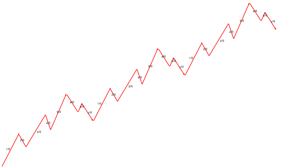 상승파동에서 1파,2파,3파,4파,5파...(7파나 9파까지 나올 수도 있음)