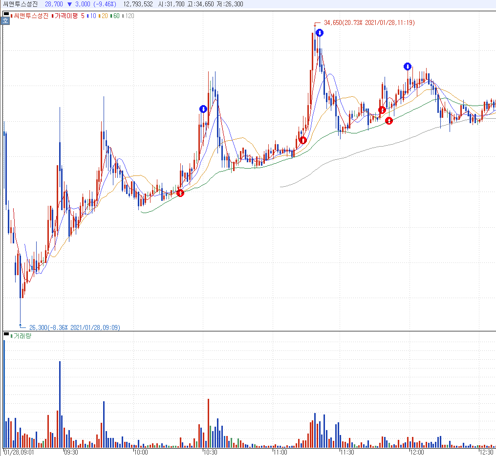 저는 분봉상 매매를 할때 5파에 팔고 c파 종료시점에서 사는걸 좋아하는데