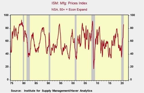 ISM (Institute of Supply Management)은 제조업 부문의 종합 가격 지수가 86 %로 4 % 포인트 상승했다고