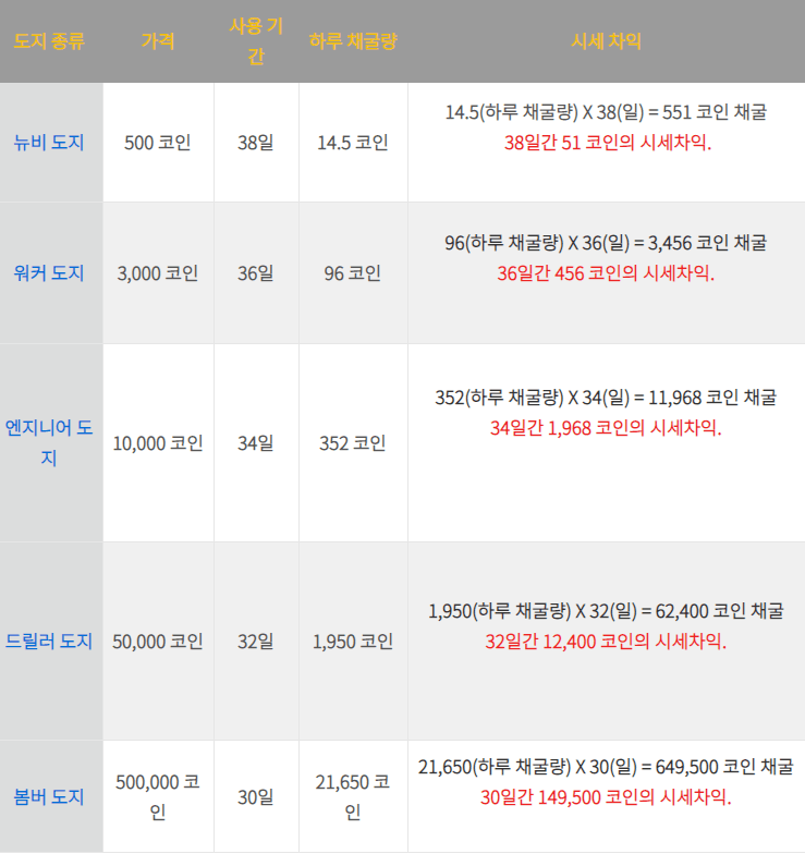 (와우도지 사이트에서 구입 가능한 광부들)