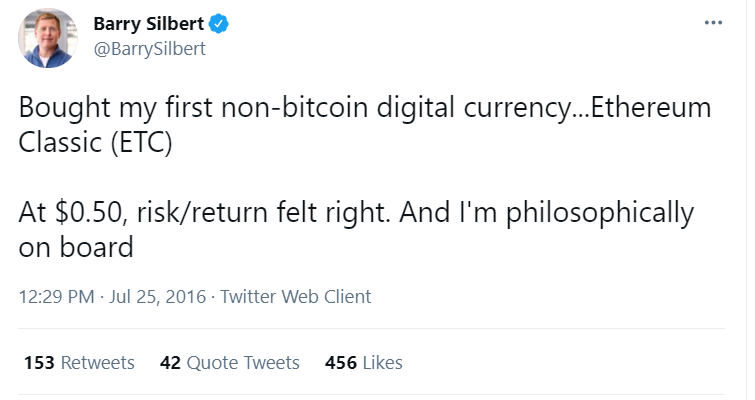 2016년부터 이더리움을 구매해온 미국의 억만장자이자 Digital Currency Group 벤처캐피털 CEO인 Barry Silbert이 한국시각 5월 9일에 도지코인 (Dogecoin)의 가격이 하락할 것이라고 주장하며 상당한 금액을 숏(short)에 배팅했다고 자신의 트위터를 통해 밝혔습니다.