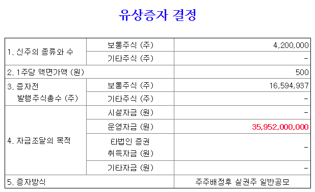 ※ 강스템바이오텍의 유상증자로인한 공시 내용