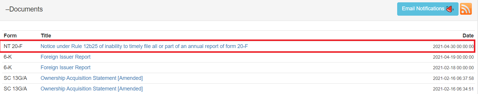 나스닥에 상장된 드론택시업체 이항이 20F 보고서(10-Q 분기보고서의 해외기업 버전)를 마감일 안에 제출하지 못한 것으로 알려졌습니다. 이미 한차례 4월30일에 연장신청을 하여 오늘 동부시간 5:30pm (한국기준 오전 6:30)까지 유예기간이 주어졌었는데요. 오늘 장 마감후에도 보고서는 올라오지 않았네요.