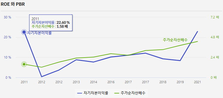 이해를 잘 하든 못하든 이런 그래프들도 좀 살펴본다. PSR이 좀 높은 것 빼고는 딱히 문제가 될 부분이 없다. 일단 이런 류의 그래프는 부채, PSR, PBR 등을 빼고는 우상향할수록 대부분 좋다.