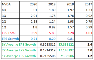 (2) EPS를 16분기로 쪼개서 보는 것은 매분기 실적 발표 때마다 데이터를 업데이트 하기가 쉽기 때문이다. 또, 단순히 3년 평균 PEG와 같이 1회성으로 보지 않고 2년, 1년을 추가해서 보는 것은 데이터 해석의 오류를 줄이기 위함이다.