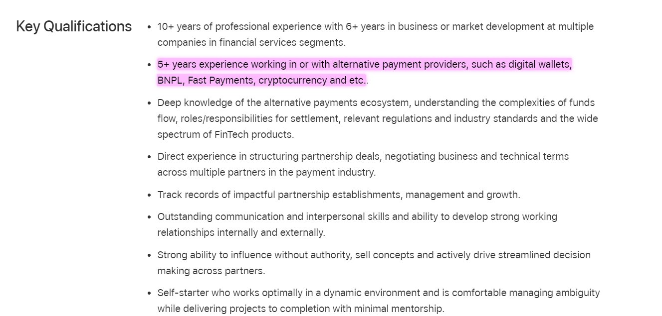 Apple is looking for a crypto-savvy biz-dev specialist to lead "alternative payments" partnership efforts.